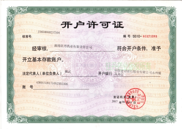 開戶許可證(原件)