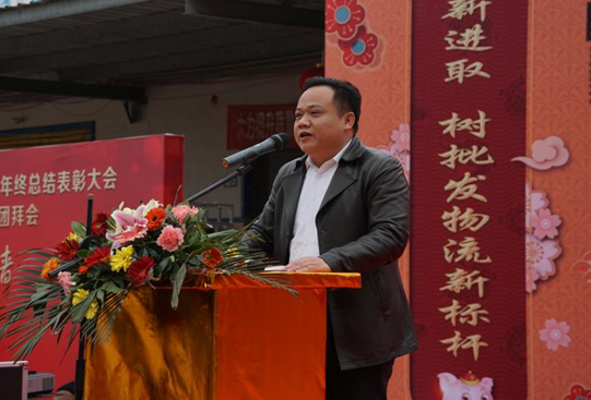 鈺丹藥業(yè)有限責(zé)任公司總經(jīng)理兼永州鈺丹倉(cāng)儲(chǔ)配送有限責(zé)任公司董事長(zhǎng)、永州湘桂源農(nóng)林開(kāi)發(fā)有限責(zé)任公司總經(jīng)理揭武同志,在會(huì)上做新春致辭,他對(duì)能夠參加本次團(tuán)拜會(huì)的客戶朋友、廠家業(yè)務(wù)員代表、嘉賓、老戰(zhàn)友以及各界朋友的到來(lái)表示熱烈歡迎;對(duì)一直以來(lái)默默為公司付出的全體員工以及在公司遇到困難,伸出援助之手幫助公司走出困境的員工和各界朋友表示由衷地感謝;千萬(wàn)句的“感恩”,匯成一個(gè)莊重、真誠(chéng)的軍禮,贏得了在場(chǎng)人員雷鳴般地掌聲!