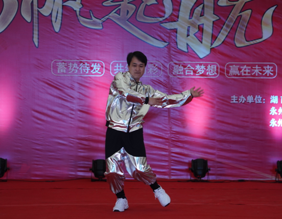 便民藥房的姑娘們一曲《奔跑》,靚麗的服飾、青春無(wú)敵的顏值給大家眼前一亮。表演者:零陵便民藥房選送