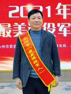 1961年出生,中共黨員,1979 年入伍,1992年退役,當(dāng)過公職人員,后辭職從事藥品銷售管理工作,躬耕于藥業(yè)、農(nóng)林業(yè),2017年創(chuàng)辦永州鈺丹倉儲(chǔ)配送有限責(zé)任公司。先后獲評(píng)“湖南好人”、永州市“優(yōu)秀共產(chǎn)黨員”“最美退役軍人”。2021年11月參加湖南省退役軍人創(chuàng)業(yè)創(chuàng)新大賽,榮獲傳統(tǒng)產(chǎn)業(yè)及生活服務(wù)業(yè)組三等獎(jiǎng)。