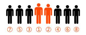 (2)領(lǐng)導(dǎo)為偶數(shù)時(shí),1、2號(hào)領(lǐng)導(dǎo)同時(shí)居中,2號(hào)領(lǐng)導(dǎo)依然在1號(hào)領(lǐng)導(dǎo)左手位置,3號(hào)領(lǐng)導(dǎo)依然在1號(hào)領(lǐng)導(dǎo)右手位置?蓞⒁娤聢D的座次排列:
