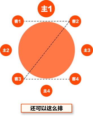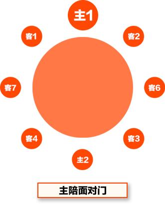 宴請(qǐng)客人,一般主陪在面對(duì)房門的位置,副主陪在主陪的對(duì)面,1號(hào)客人在主陪的右手,2號(hào)客人在主陪的左手,3號(hào)客人在副主陪的右手,4號(hào)客人在副主陪的左手,其他可以隨意?蓞⒁娤聢D的座次排列: